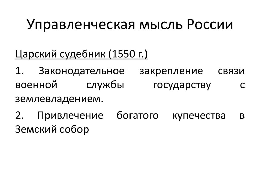 Управленческая мысль РоссииЦарский судебник (1550 г.)
