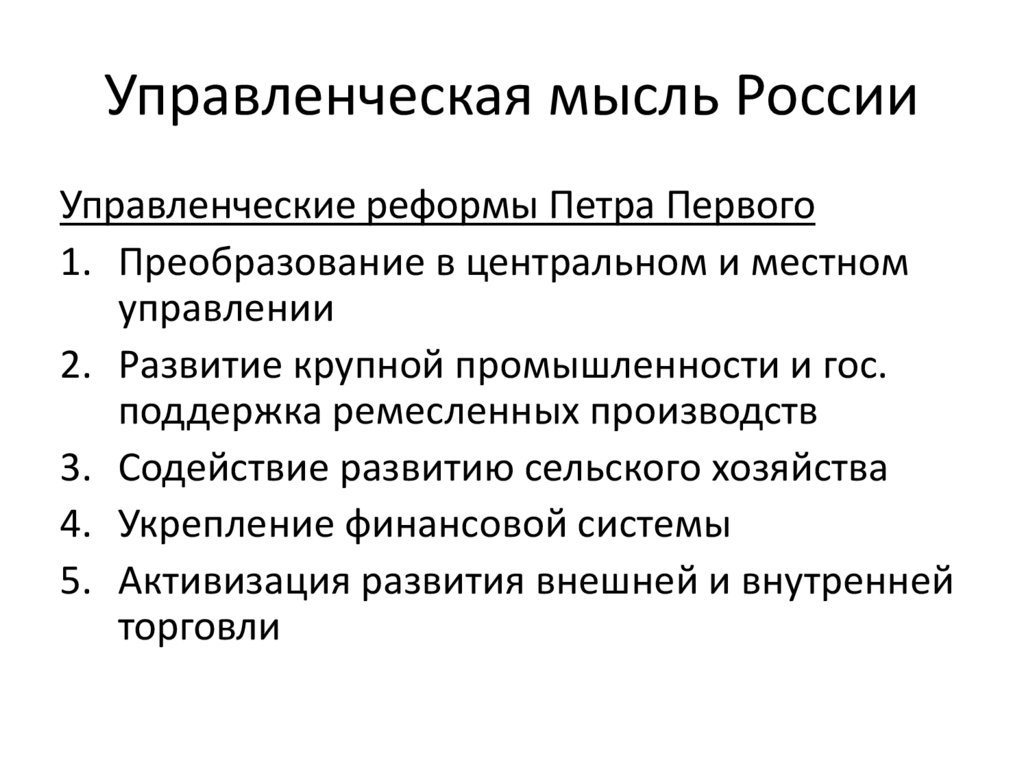 Управленческая мысль РоссииУправленческие реформы Петра Первого