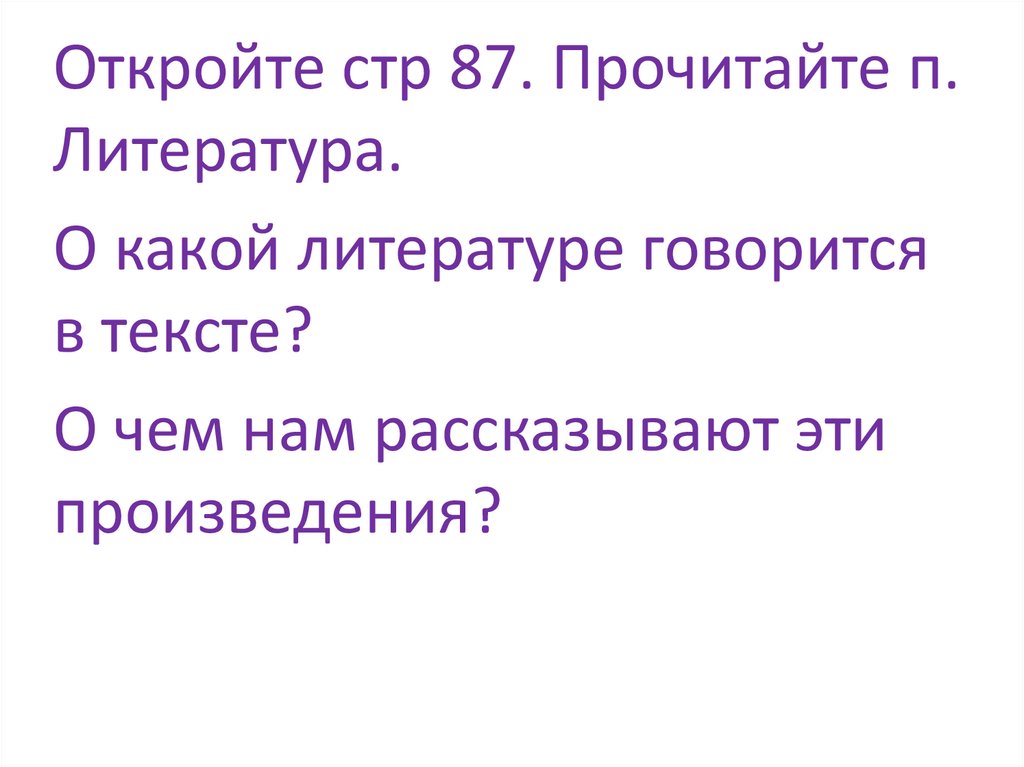 Откройте стр 87. Прочитайте п.Литература.
