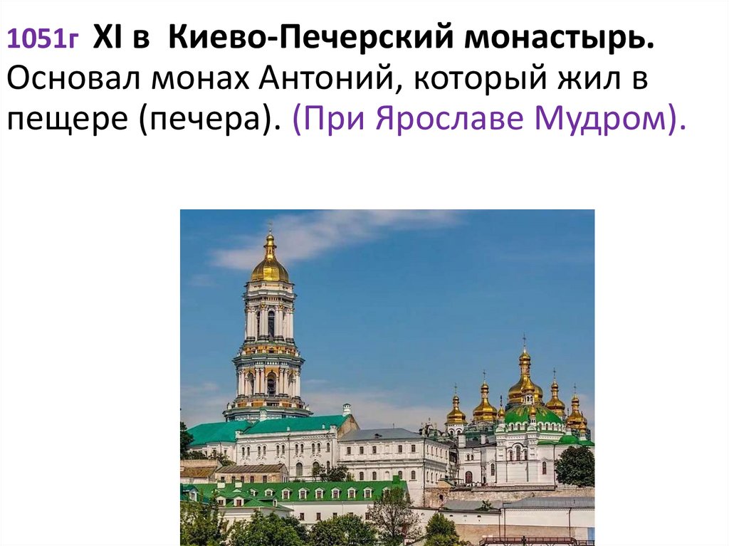 XI в Киево-Печерский монастырь.Основал монах Антоний, который жил в