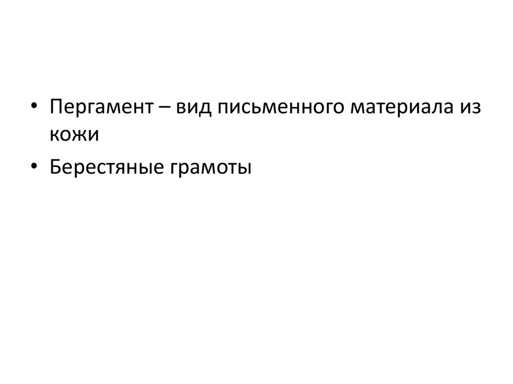 • Пергамент – вид письменного материала изкожи