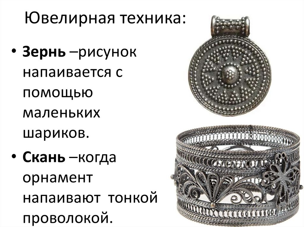 Ювелирная техника:• Зернь –рисунок