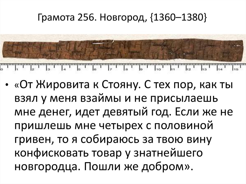 Грамота 256. Новгород, {1360–1380}• «От Жировита к Стояну. С тех пор, как ты