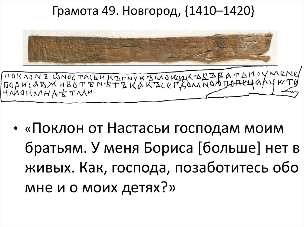 Грамота 49. Новгород, {1410–1420}• «Поклон от Настасьи господам моим