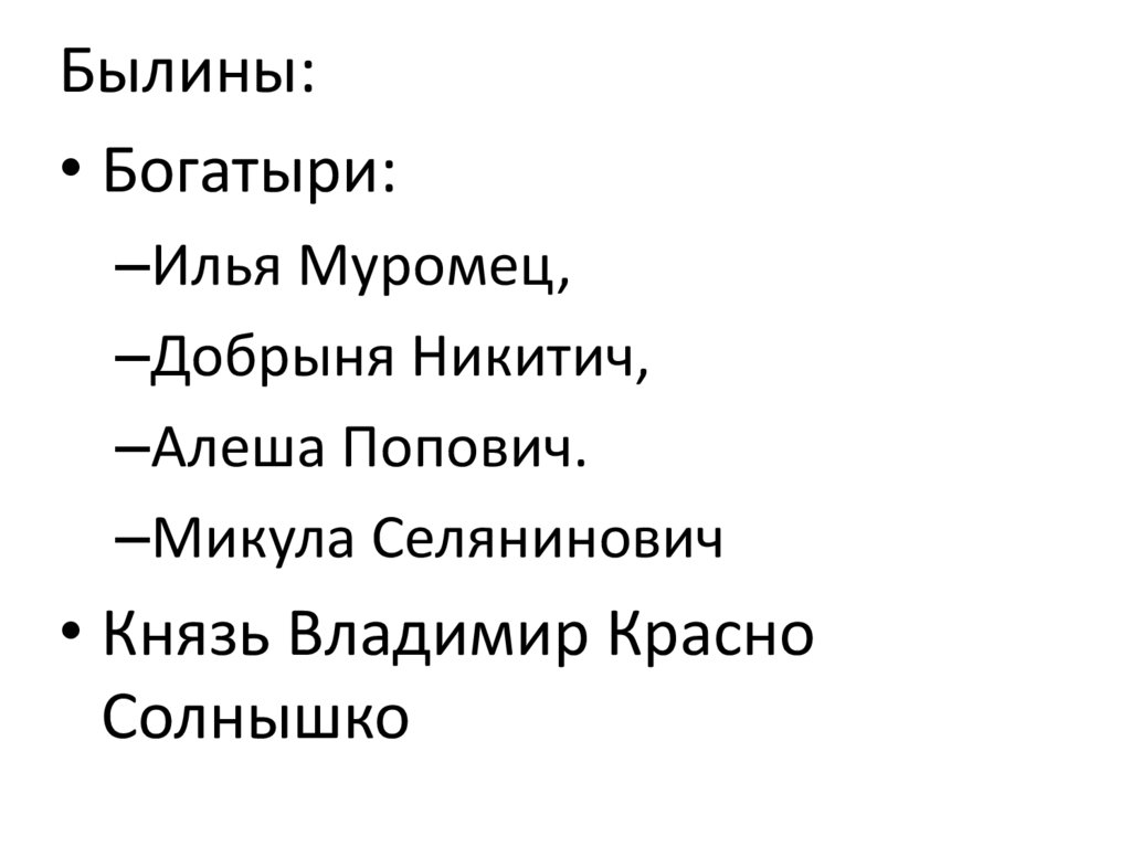 Былины:• Богатыри: