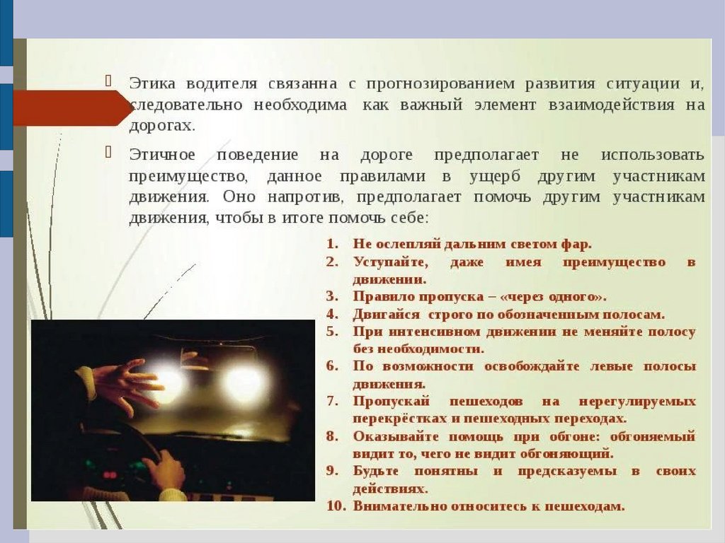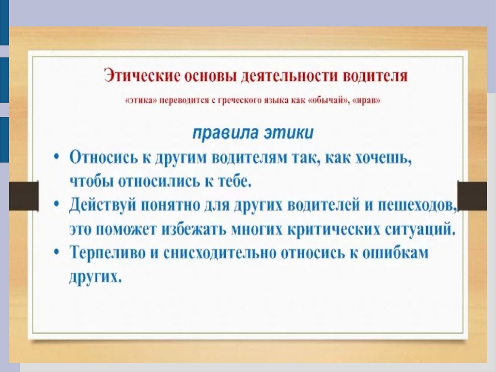 Этические основы деятельности водителя