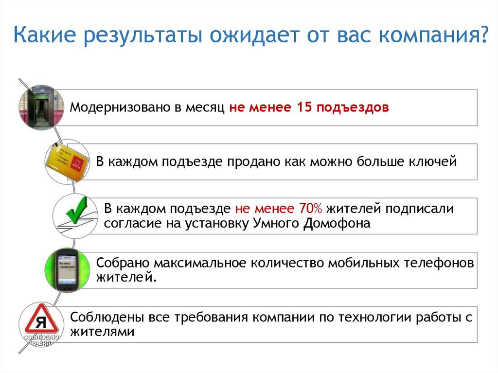 Какие результаты ожидает от вас компания?Модернизовано в месяц не менее 15 подъездов