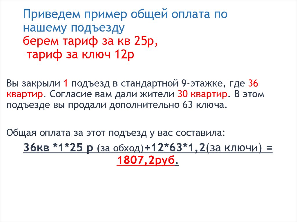 Приведем пример общей оплата понашему подъезду