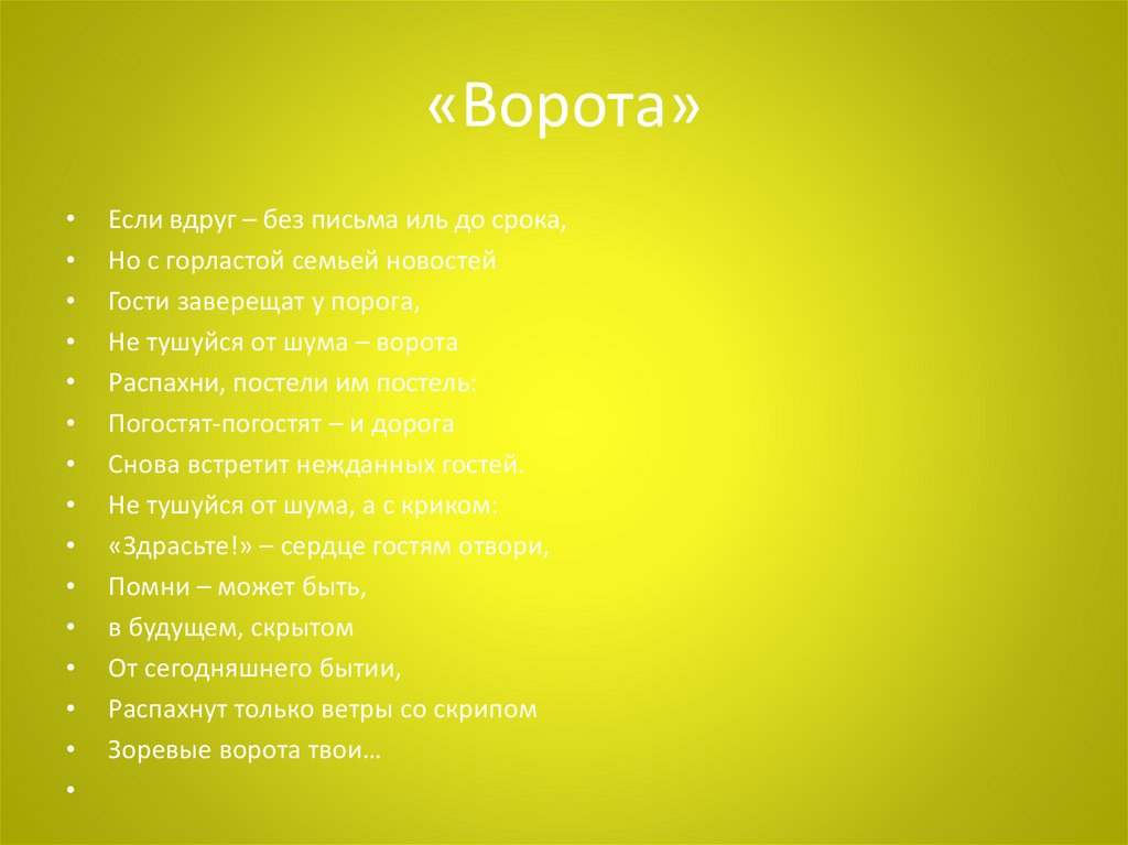 «Ворота»Если вдруг – без письма иль до срока,