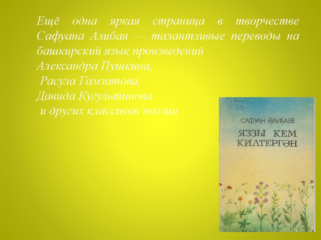Ещё одна яркая страница в творчествеСафуана Алибая — талантливые переводы на