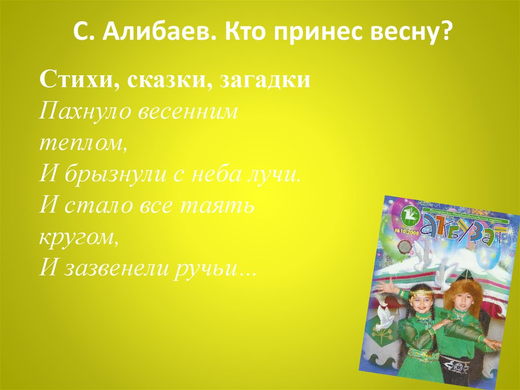 С. Алибаев. Кто принес весну?Стихи, сказки, загадки