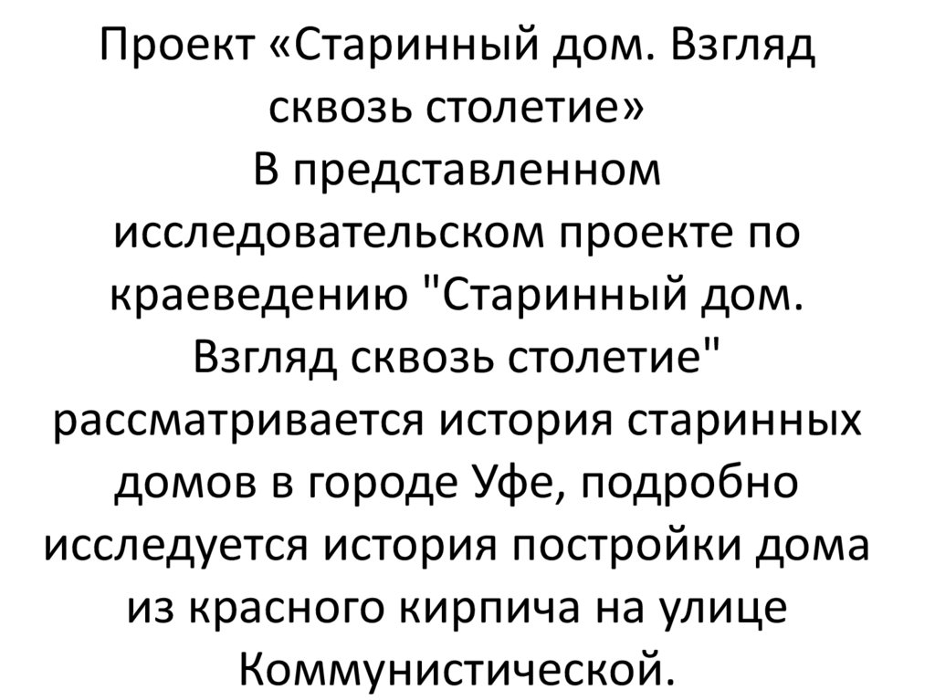 Проект «Старинный дом. Взглядсквозь столетие»