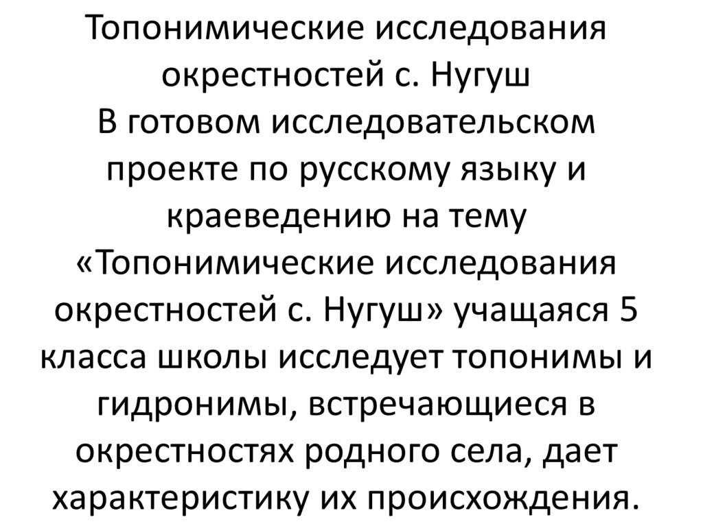 Топонимические исследованияокрестностей с. Нугуш