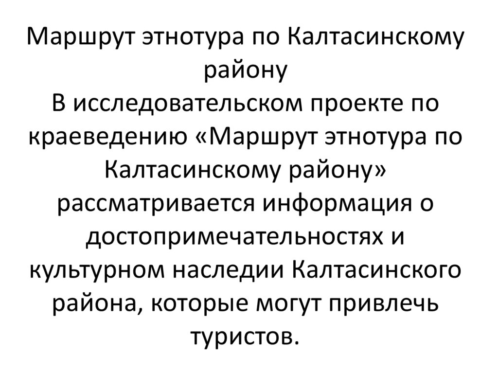 краеведению «Маршрут этнотура по