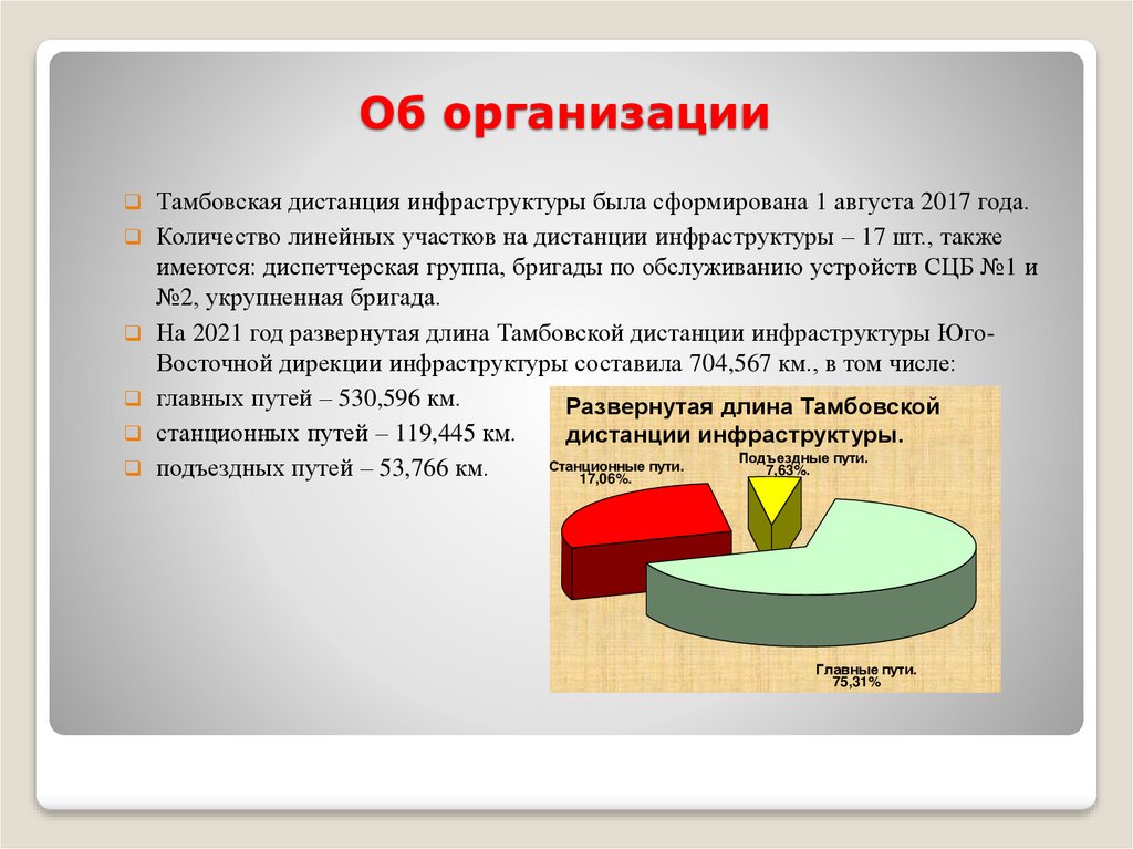 Тамбовская дистанция инфраструктуры – структурноеподразделение Юго-Восточной дирекции инфраструктуры ОАО