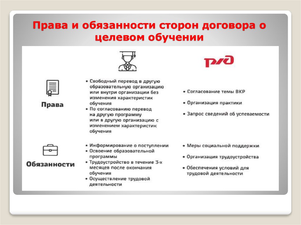 Права и обязанности сторон договора оцелевом обучении