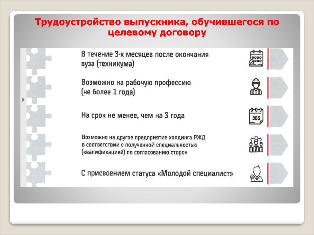 Трудоустройство выпускника, обучившегося поцелевому договору