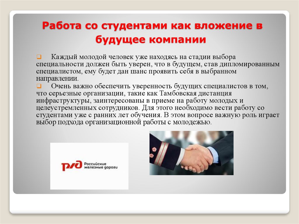 Работа со студентами как вложение вбудущее компании