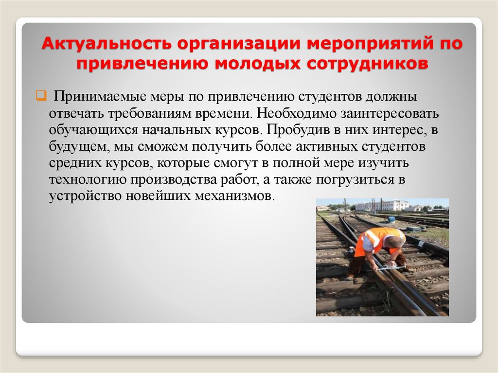 Актуальность организации мероприятий попривлечению молодых сотрудников