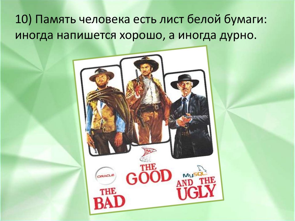 10) Память человека есть лист белой бумаги:иногда напишется хорошо, а иногда дурно.