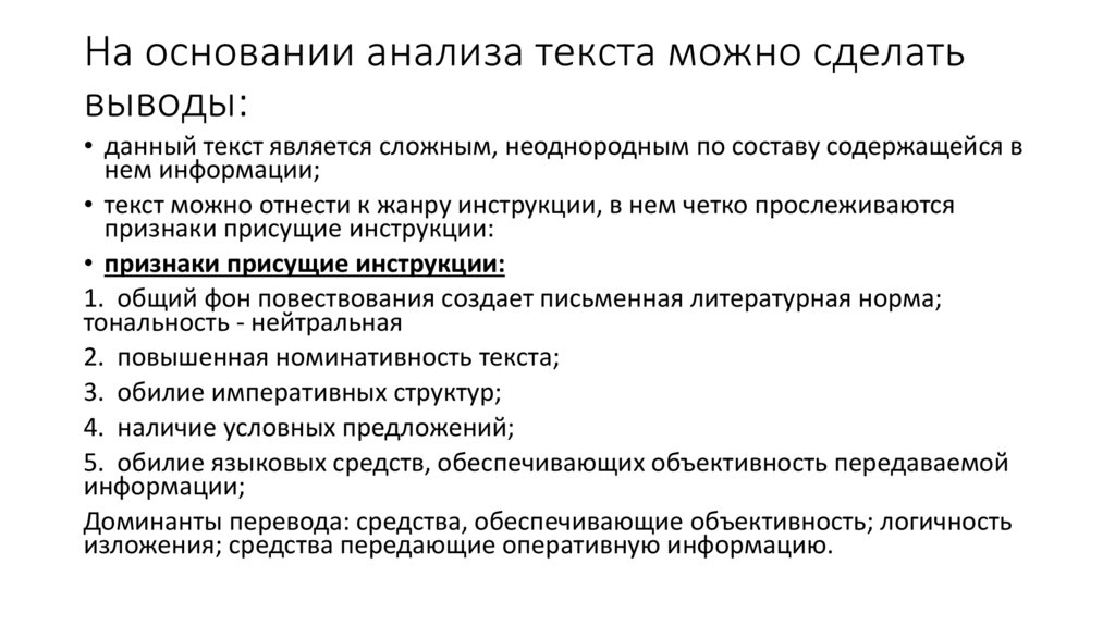 На основании анализа текста можно сделатьвыводы: