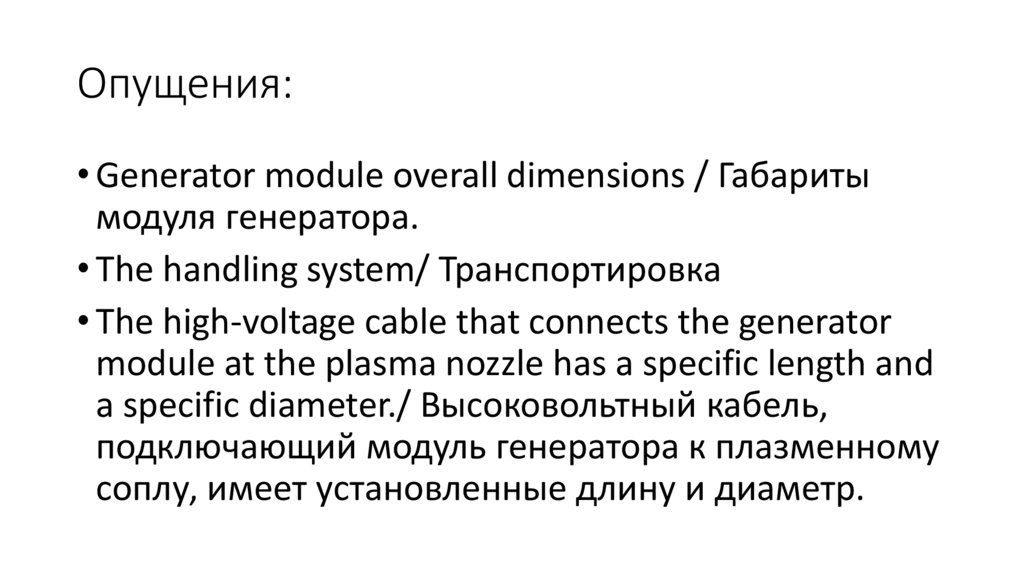 Опущения:• Generator module overall dimensions / Габариты
