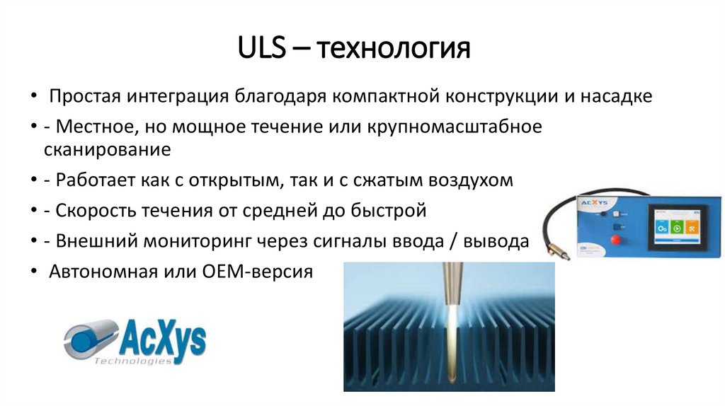ULS – технология• Простая интеграция благодаря компактной конструкции и насадке