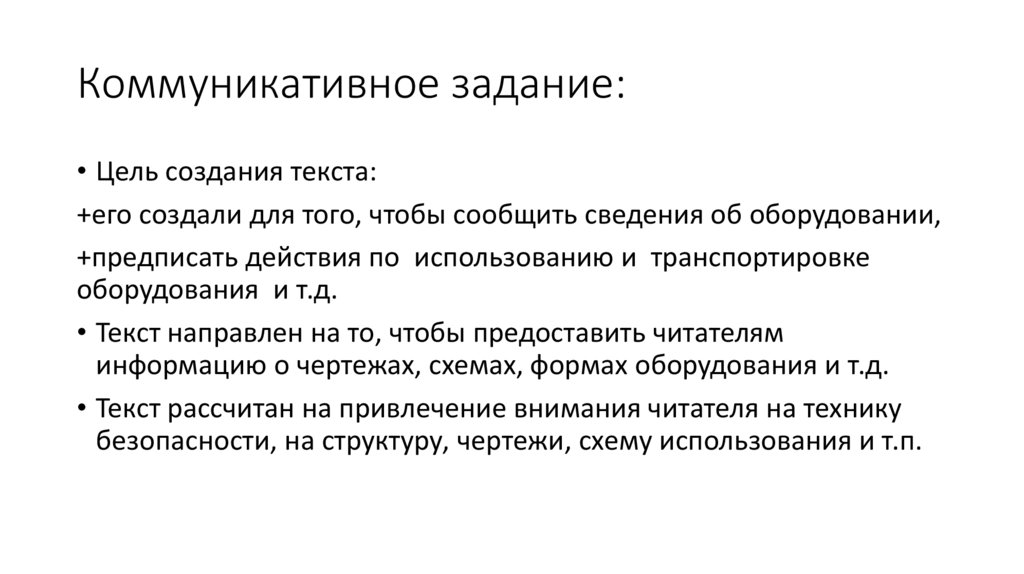 Коммуникативное задание:• Цель создания текста: