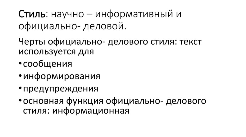 Стиль: научно – информативный иофициально- деловой.