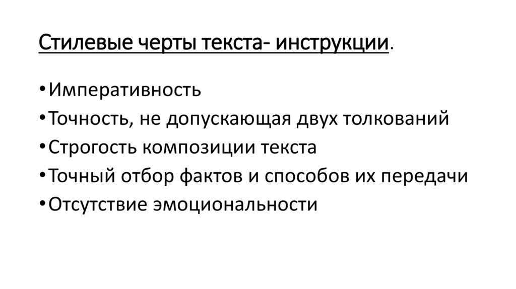 Стилевые черты текста- инструкции.• Императивность