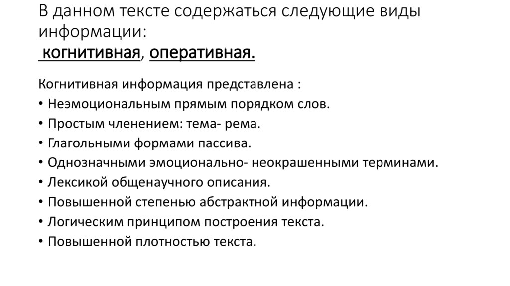В данном тексте содержаться следующие видыинформации: