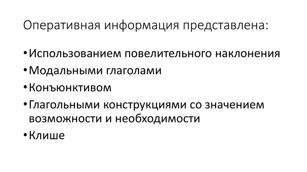 Оперативная информация представлена:• Использованием повелительного наклонения