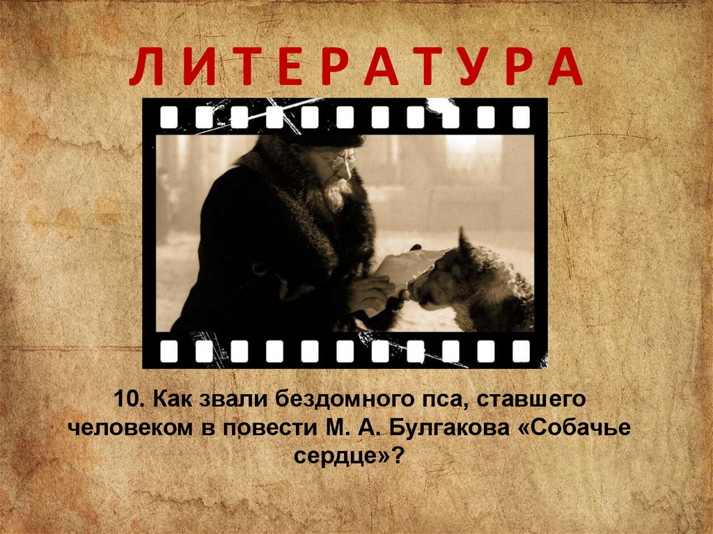ЛИТЕРАТУРА10. Как звали бездомного пса, ставшего