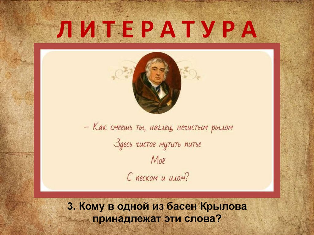 ЛИТЕРАТУРА3. Кому в одной из басен Крылова