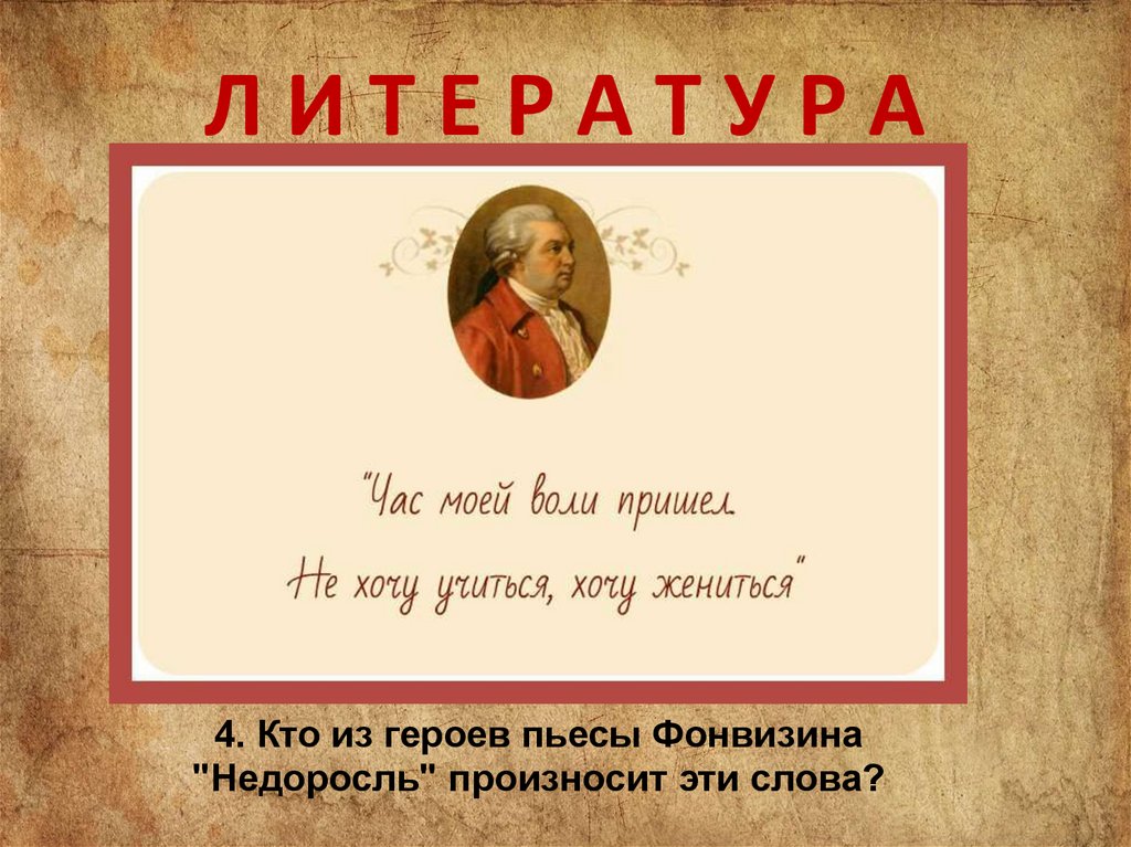 ЛИТЕРАТУРА4. Кто из героев пьесы Фонвизина