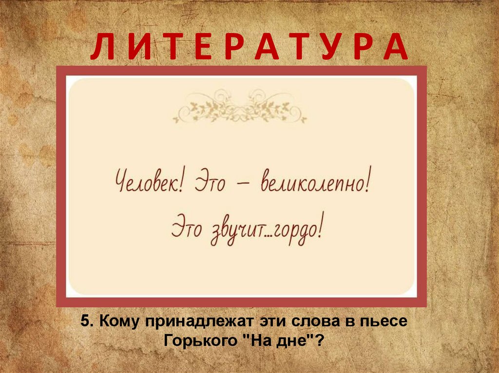 ЛИТЕРАТУРА5. Кому принадлежат эти слова в пьесе