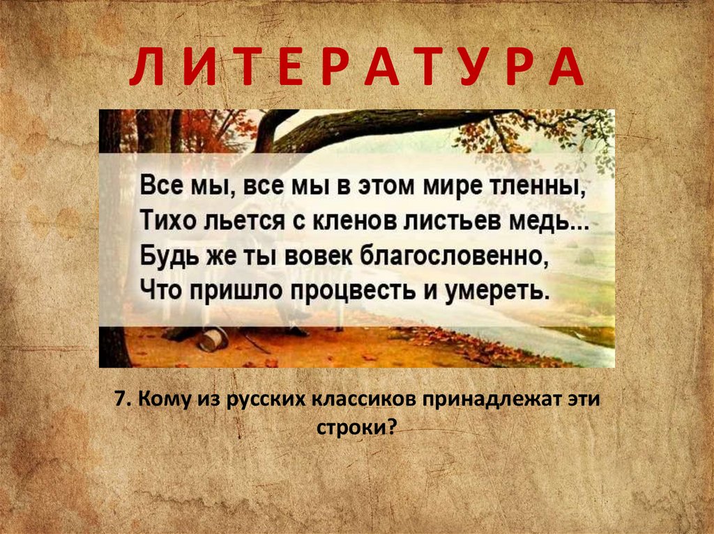 ЛИТЕРАТУРА7. Кому из русских классиков принадлежат эти