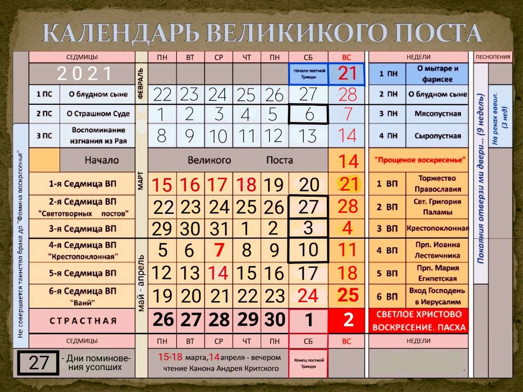 Календарь Великикого Поста