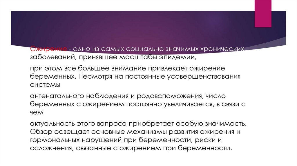 Ожирение - одно из самых социально значимых хроническихзаболеваний, принявшее масштабы эпидемии,