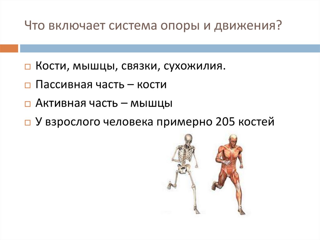 Что включает система опоры и движения?Кости, мышцы, связки, сухожилия.