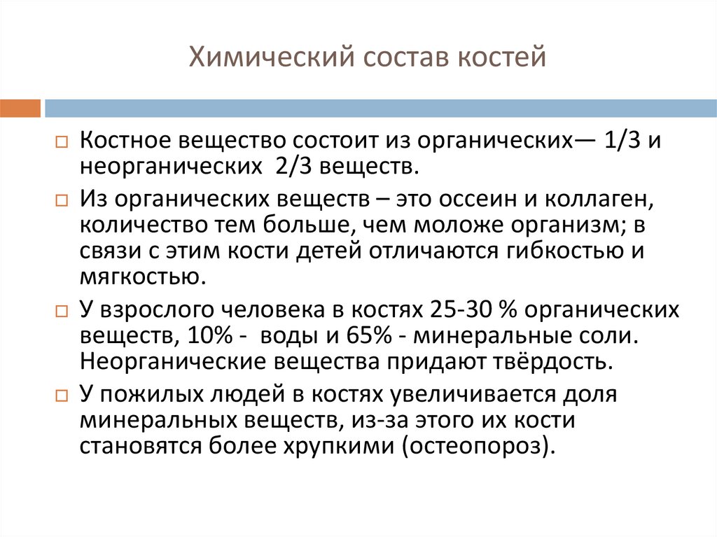 Химический состав костейКостное вещество состоит из органических— 1/3 и