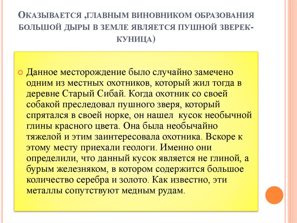 ОКАЗЫВАЕТСЯ ,ГЛАВНЫМ ВИНОВНИКОМ ОБРАЗОВАНИЯБОЛЬШОЙ ДЫРЫ В ЗЕМЛЕ ЯВЛЯЕТСЯ ПУШНОЙ ЗВЕРЕККУНИЦА)