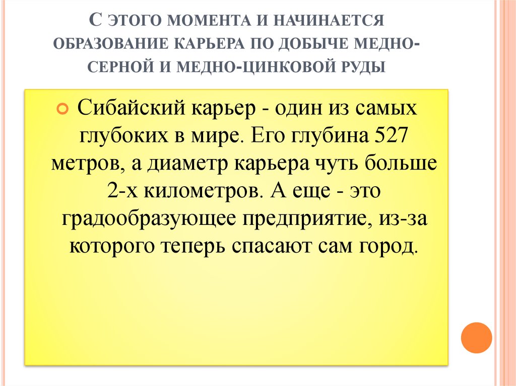 С ЭТОГО МОМЕНТА И НАЧИНАЕТСЯОБРАЗОВАНИЕ КАРЬЕРА ПО ДОБЫЧЕ МЕДНОСЕРНОЙ И МЕДНО-ЦИНКОВОЙ РУДЫ