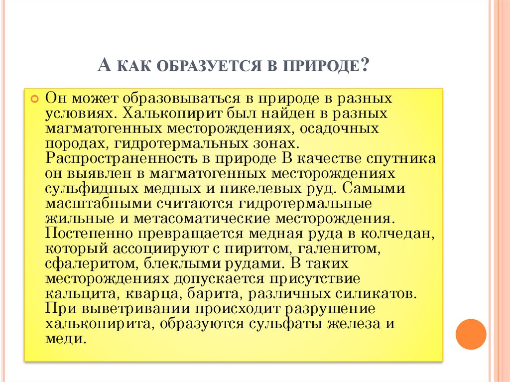условиях. Халькопирит был найден в разных