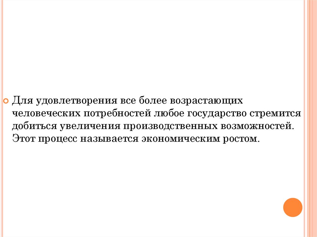 Экономический рост- это ежегодное устойчивое увеличениепроизводства различных благ и услуг.