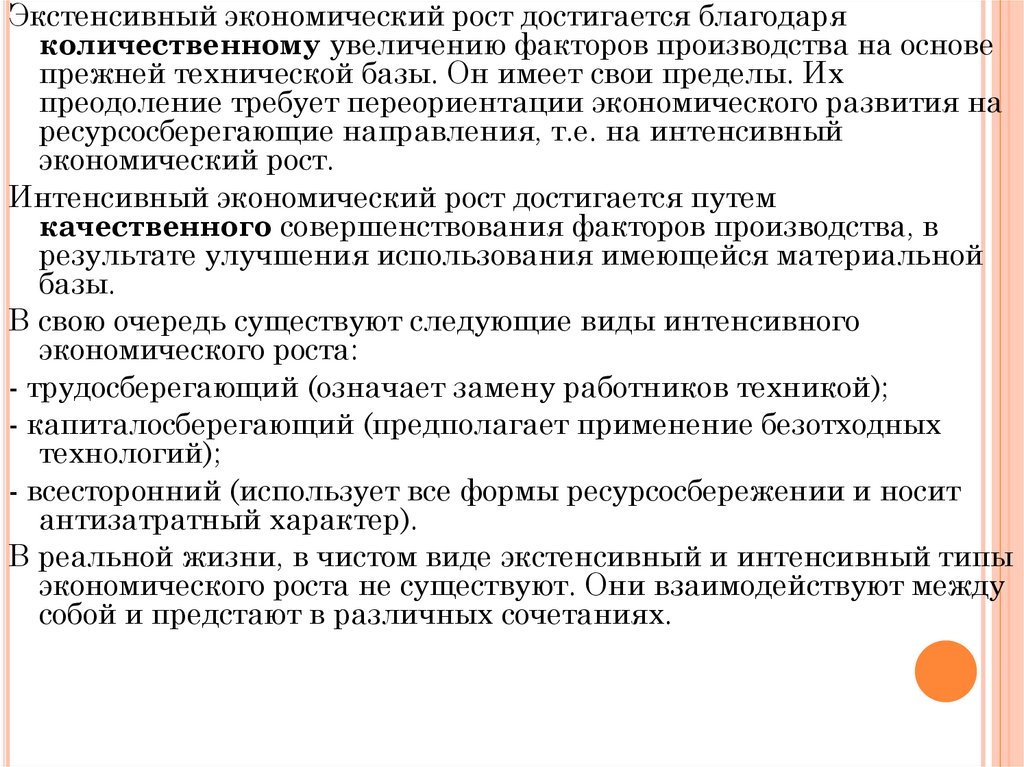 Интенсивный экономический рост достигается путем