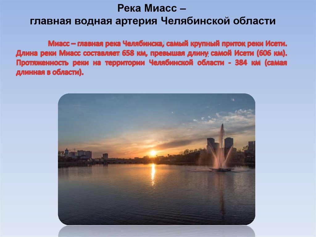 Река Миасс – главная водная артерия Челябинской области. 5 класс