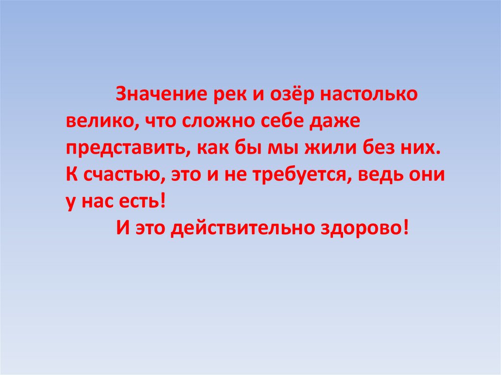 Значение рек и озёр настольковелико, что сложно себе даже