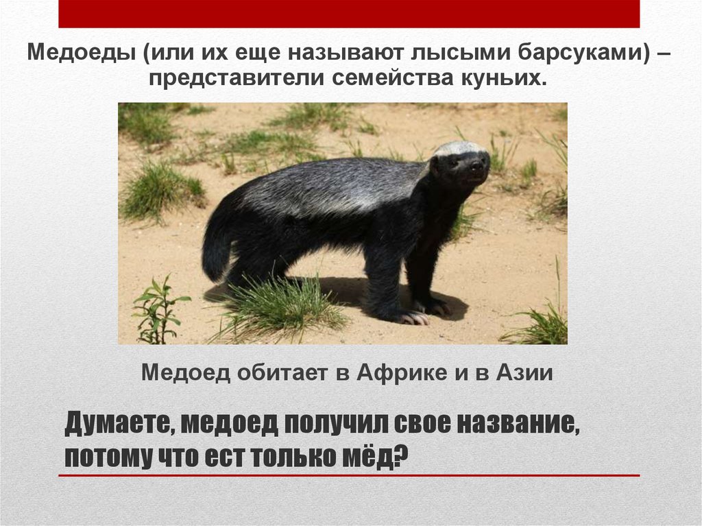 Медоеды (или их еще называют лысыми барсуками) –представители семейства куньих.