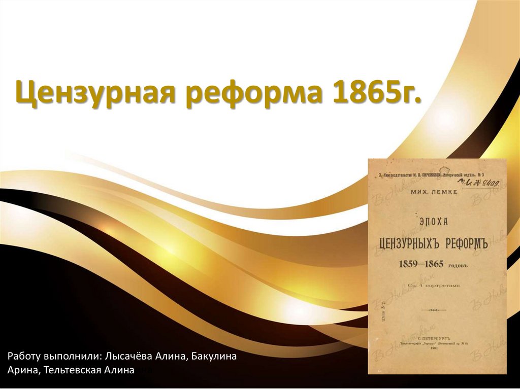 Цензурная реформа 1865г.Работу выполнили: Лысачёва Алина, Бакулина